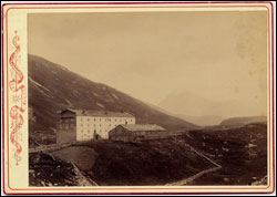 Il Piccolo San Bernardo, 26 luglio 1889 Fotografia del conte Ferdinando Reviglio della Veneria a ricordo di una «bellissima gita» insieme a Carducci all’Ospizio del Piccolo San Bernardo. Assaporato il paesaggio e la storia della terra valdostana attraverso vademecum e guide, e, specie, dopo la lettura dei Castelli valdostani e canevesani di Giuseppe Giacosa, Carducci fu a Courmayeur per la prima volta nel luglio-agosto 1887, ritornandovi nelle estati del 1889, 1890, 1895 e del 1898. | | | | |