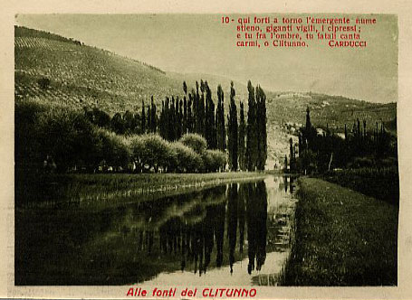Alle fonti del Clitumno Da una serie di cartoline illustrate che ricompone il testo dell’omonima ode composta fra il 2 luglio e il 21 ottobre 1876 (edita nella princeps delle Barbare) dopo la visita alle «Vene del conte Campello», come allora si chiamavano queste fonti, nella «bellissima Umbria».