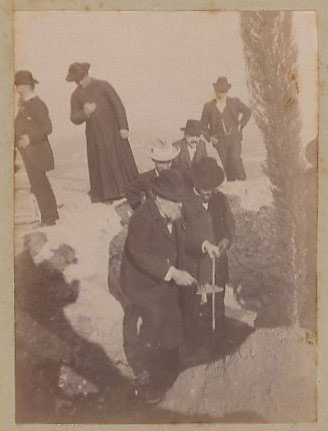 Carducci a Calalzo di Cadore con amici nel 1892 Fotografia albumina, G. Riva, Calalzo. In piedi, a destra, il dantista Michele Barbi (1867-1941); a sinistra Giacomo De Carlo di Calalzo con il giovane nipote; seduto, a destra del poeta, il filologo triestino Salomone Morpurgo (1860-1942); seduto a sinistra il fratello di questi, Alessandro, anch’egli letterato ed irredentista al pari di Albino Zenatti (1859-1915) in basso sempre a sinistra di Carducci.