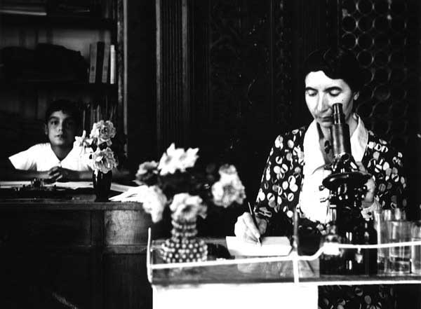 La madre di Calvino, prima donna in Italia a ricoprire una cattedra di botanica; sullo sfondo, Italo. “Il sapere dei miei genitori convergeva sul regno vegetale, le sue meraviglie e le sue virtù. Io attratto da un’altra vegetazione, quella delle frasi scritte, voltai le spalle a quanto essi m’avrebbero potuto insegnare”.(1980)