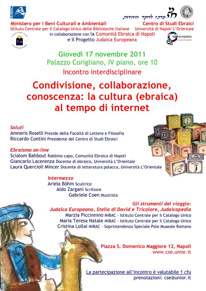Il primo "Condivisione, collaborazione, conoscenza: la cultura (ebraica) ai tempi di internet", in programma il 17 novembre 2011, è ospitato e co-organizzato dall'Università L'Orientale di Napoli con il supporto della Comunità ebraica della città partenopea.