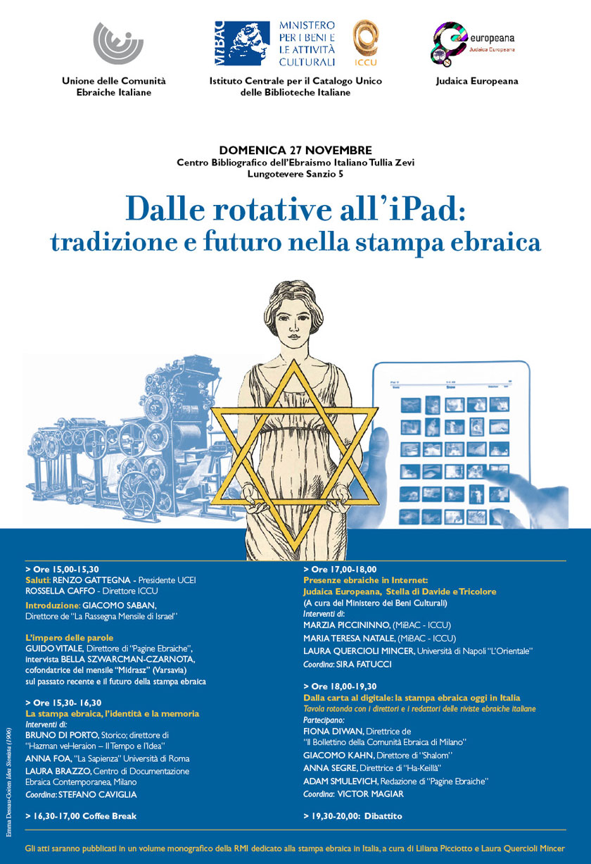 Il secondo incontro "Dalle rotative all'I-Pad: tradizione e futuro nella stampa ebraica" si svolgerà Domenica 27 novembre a Roma.