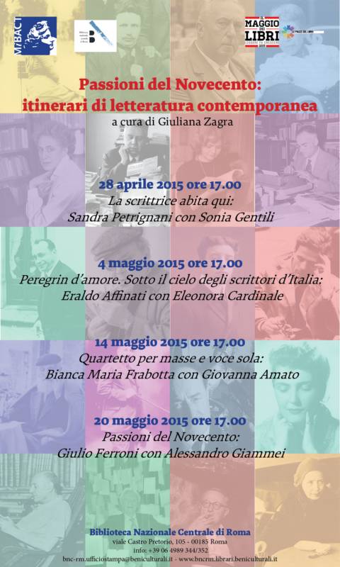 Dal 28 aprile al 20 maggio 2015 la Biblioteca Nazionale Centrale di Roma partecipa a "Il maggio dei libri" accendendosi di passione per il Novecento: grandi scrittori o critici incontrano autori più giovani per raccontare il proprio percorso nella letteratura del Secolo scorso.