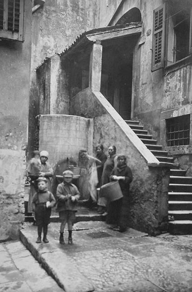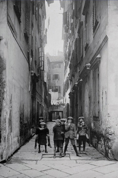 | | Il ricordo d'infanzia più antico che conservo: mi vedo un bel bambino biondo in braccio a una donna giovane e formosa (la mia amatissima balia). Sulla soglia di una bottega di mobili sta in piedi mia madre (vendeva mobili in cittavecchia) e minaccia con la mano me e la donna, perché questa mi aveva portato di nuovo in chiesa dei «goim». (Era la chiesa detta del Rosario, dove effettivamente la balia mi conduceva quando andava, la sera, alla Benedizione; ed io mi compiacevo molto e dell'odore dell'incenso e delle belle immagini). Io, a quella minaccia, scoppio in pianto; ho il senso di aver avuto paura.