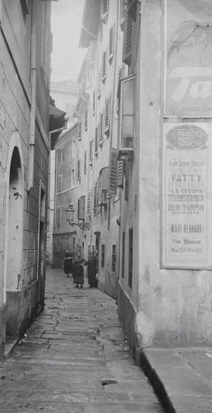 | | Il ricordo d'infanzia più antico che conservo: mi vedo un bel bambino biondo in braccio a una donna giovane e formosa (la mia amatissima balia). Sulla soglia di una bottega di mobili sta in piedi mia madre (vendeva mobili in cittavecchia) e minaccia con la mano me e la donna, perché questa mi aveva portato di nuovo in chiesa dei «goim». (Era la chiesa detta del Rosario, dove effettivamente la balia mi conduceva quando andava, la sera, alla Benedizione; ed io mi compiacevo molto e dell'odore dell'incenso e delle belle immagini). Io, a quella minaccia, scoppio in pianto; ho il senso di aver avuto paura.