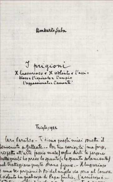 Lettera autografa in cui Saba spiega il titolo della raccolta I prigioni