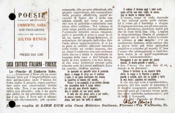 | | Il tema dell’identita’: la scissione dell’io Il tema dell’instabilità dell’io è il filo conduttore di una vita che si traduce in poesia. Il trauma dell’abbandono – del padre e delle due madri, quella vera e quella adottiva – segna l’infanzia del piccolo Umberto che cercherà per tutta la vita di esorcizzarlo attraverso la poesia e la psicoanalisi. |
