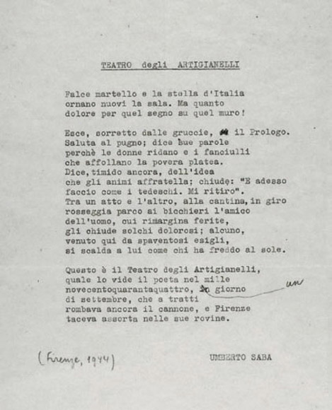 Firenze, Bologna, Torino, Milano, Roma: le fughe e i ritorni a Trieste sono continui. A Milano, dove tenterà un inserimento lavorativo, il poeta conosce Giulio Einaudi, Vittorio Sereni, Alberto Mondadori. Saba lascia più volte la sua città per tentare di radicarsi altrove, ma finisce sempre col tornarvi e ritrovarvi la sua identità e le sue interiori lacerazioni. E comunque nel secondo dopoguerra, tornato a Trieste, frequenterà sempre meno i caffè storici e i locali che amerà di più saranno soprattutto le osterie della città vecchia. Un vero punto di incontro, soprattutto negli anni precedenti le leggi razziali, è la sua stessa libreria antiquaria, dove si ritrovano anche Giovanni Comisso, Sandro Penna, Pier Antonio Quarantotti Gambini. |