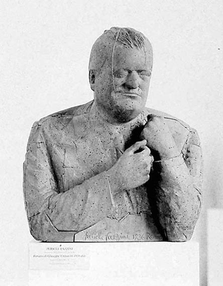 P. Fazzini, Busto di Ungaretti, s.d. scultura in legno (Roma, Galleria Nazionale d’Arte Moderna).